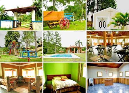 • 1 Salão fechado com varanda e banheiros, utilizado para festas, café da manhã e refeições, com sala de TV (capacidade para 100 pessoas).